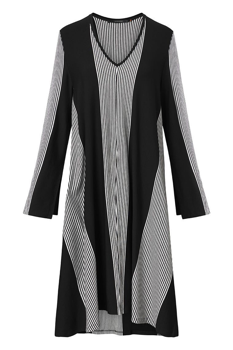 Tunika LINDLEY aus der Bekleidungskollektion von ELSEWHERE Fashion. Tunika im A-Linien-Modell mit V-Ausschnitt und hohem Schlitz vorne in der Mitte. Das Streifendesign sorgt für eine elegante Silhouette. Die Tunika hat lange Ärmel mit Schlitz.