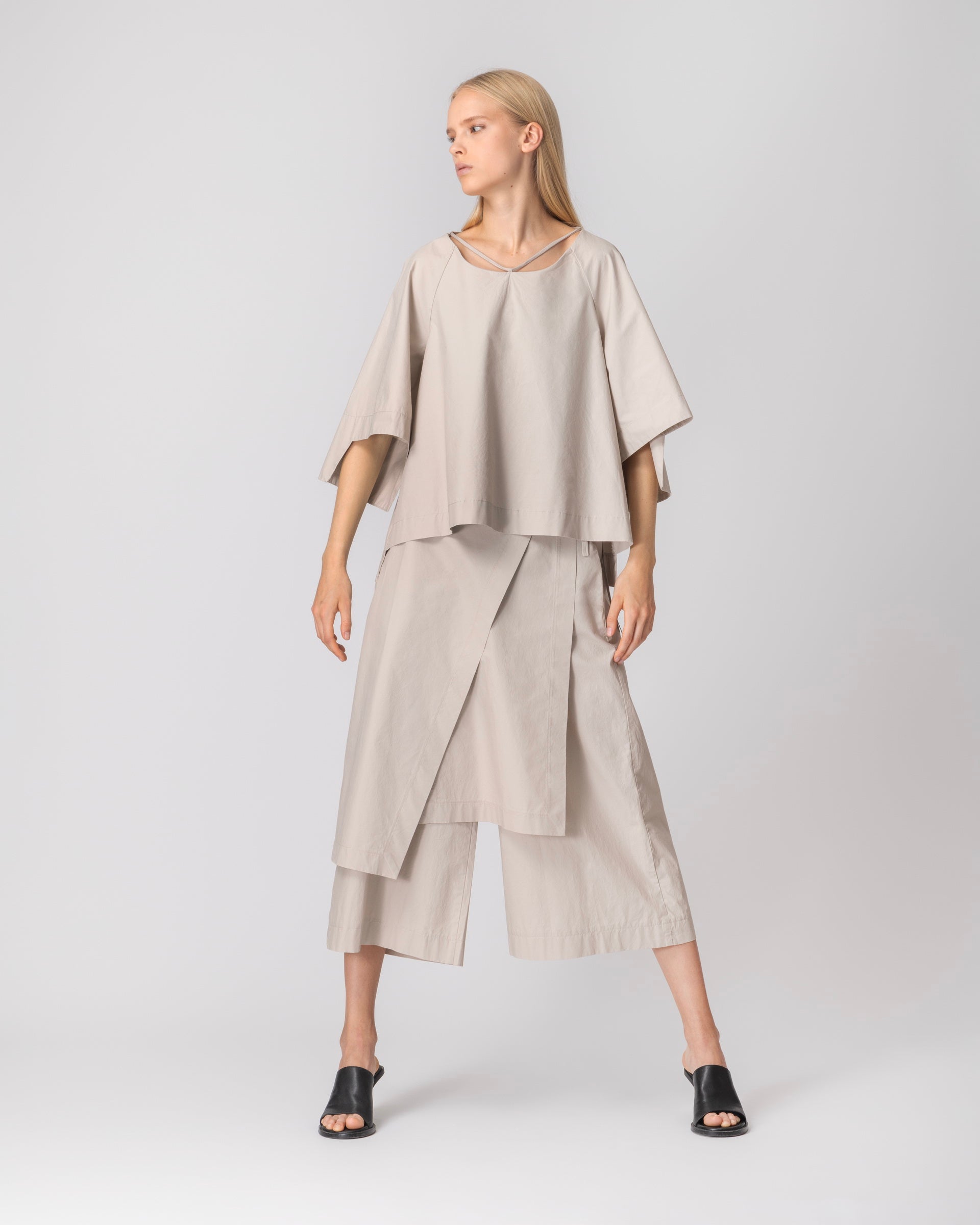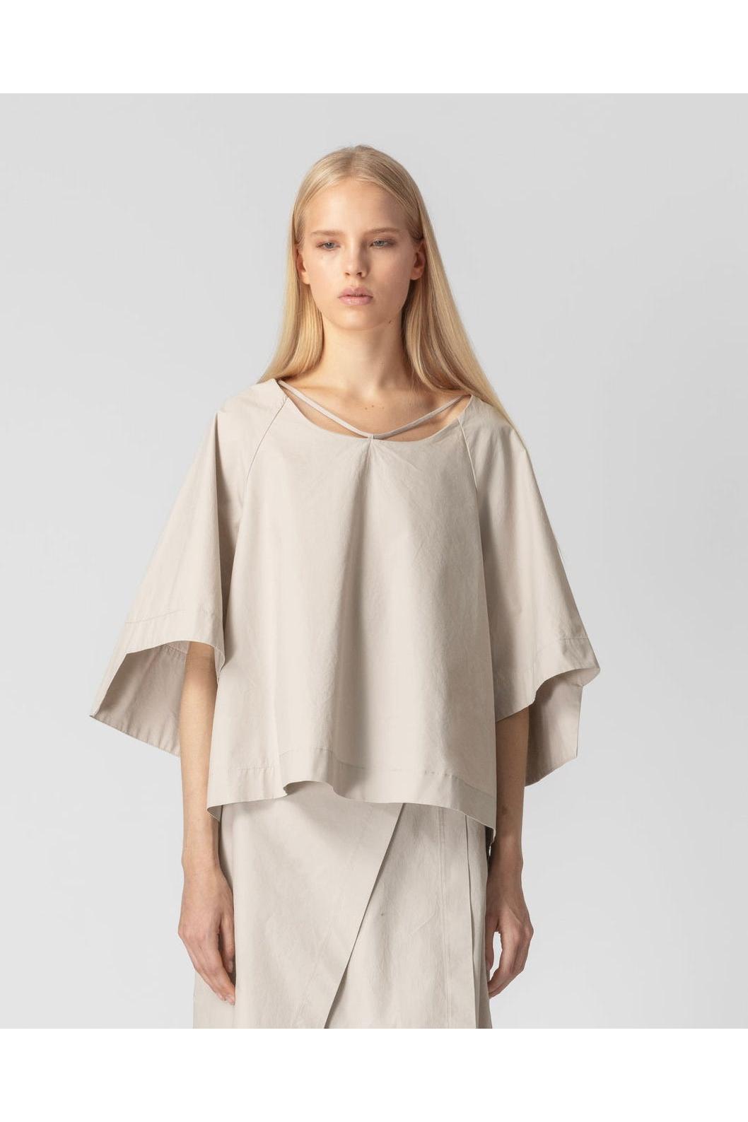 Top PARIA uit de kleding collectie van LOTUS EATERS. Elegantes Top mit weiten Ärmeln und einem dekorativen Bändchen am Ausschnitt.