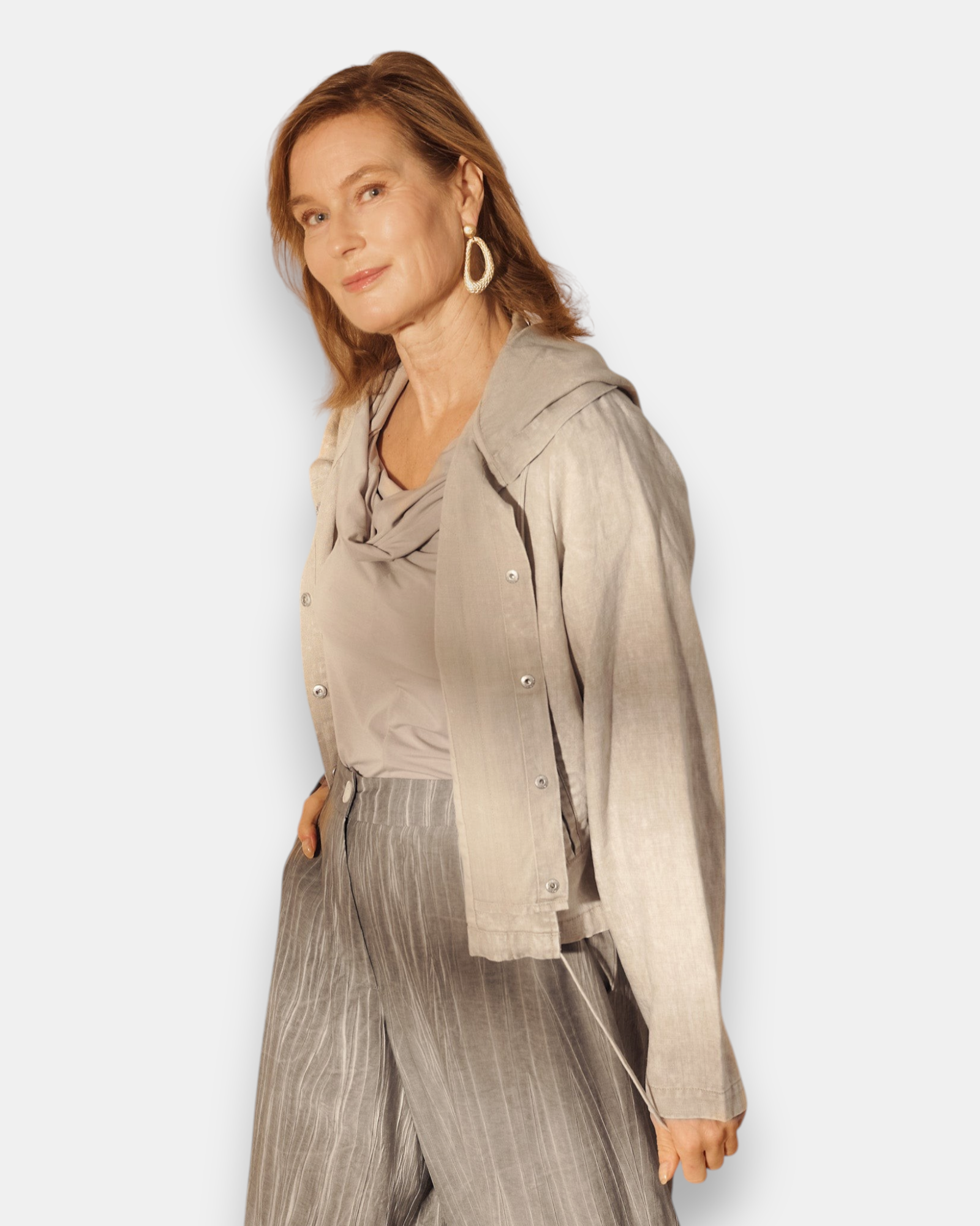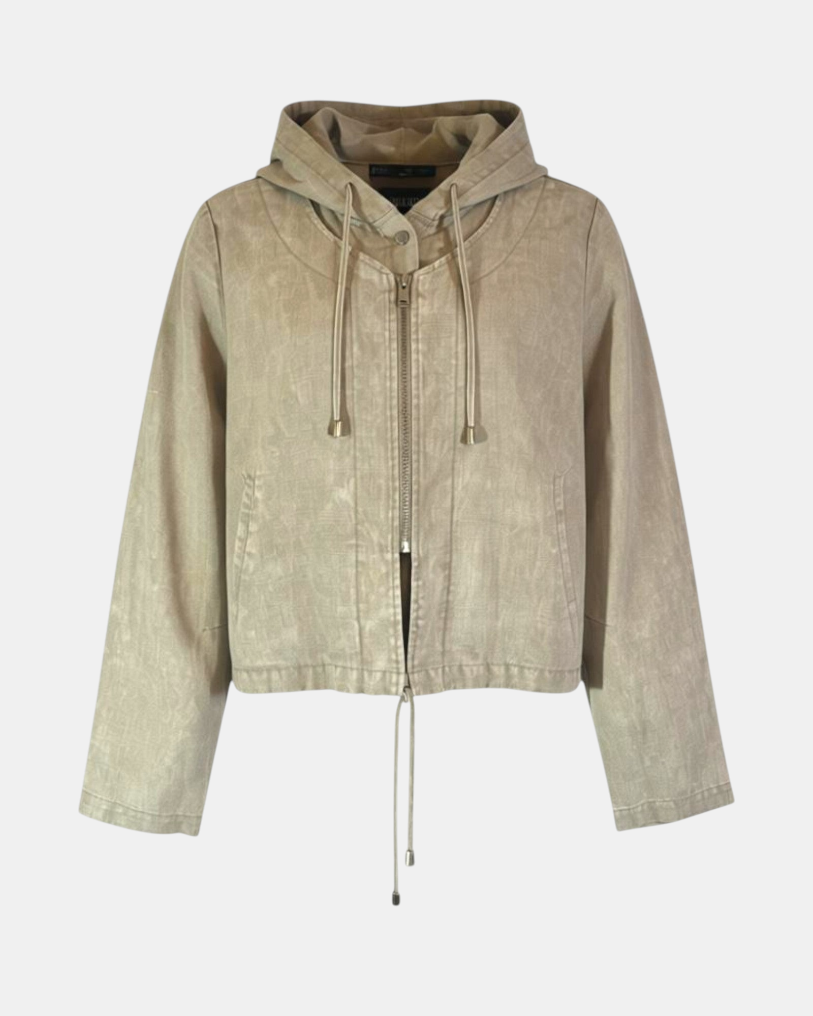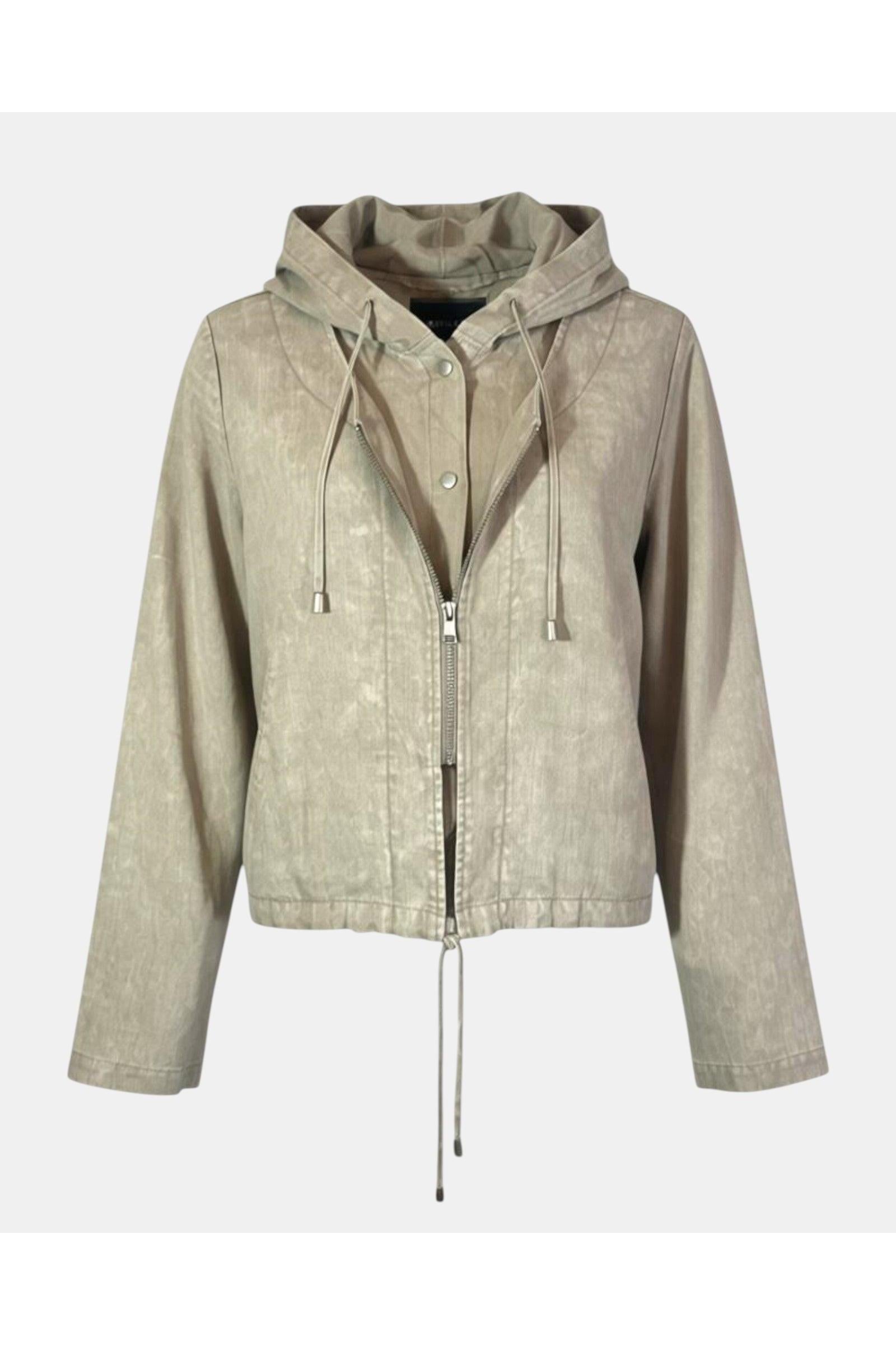 AMBER & MOON Jacke CLARA aus der Bekleidungskollektion von AMBER & MOON. Boxy geschnittene Jacke mit doppeltem Verschluss und Kapuze.