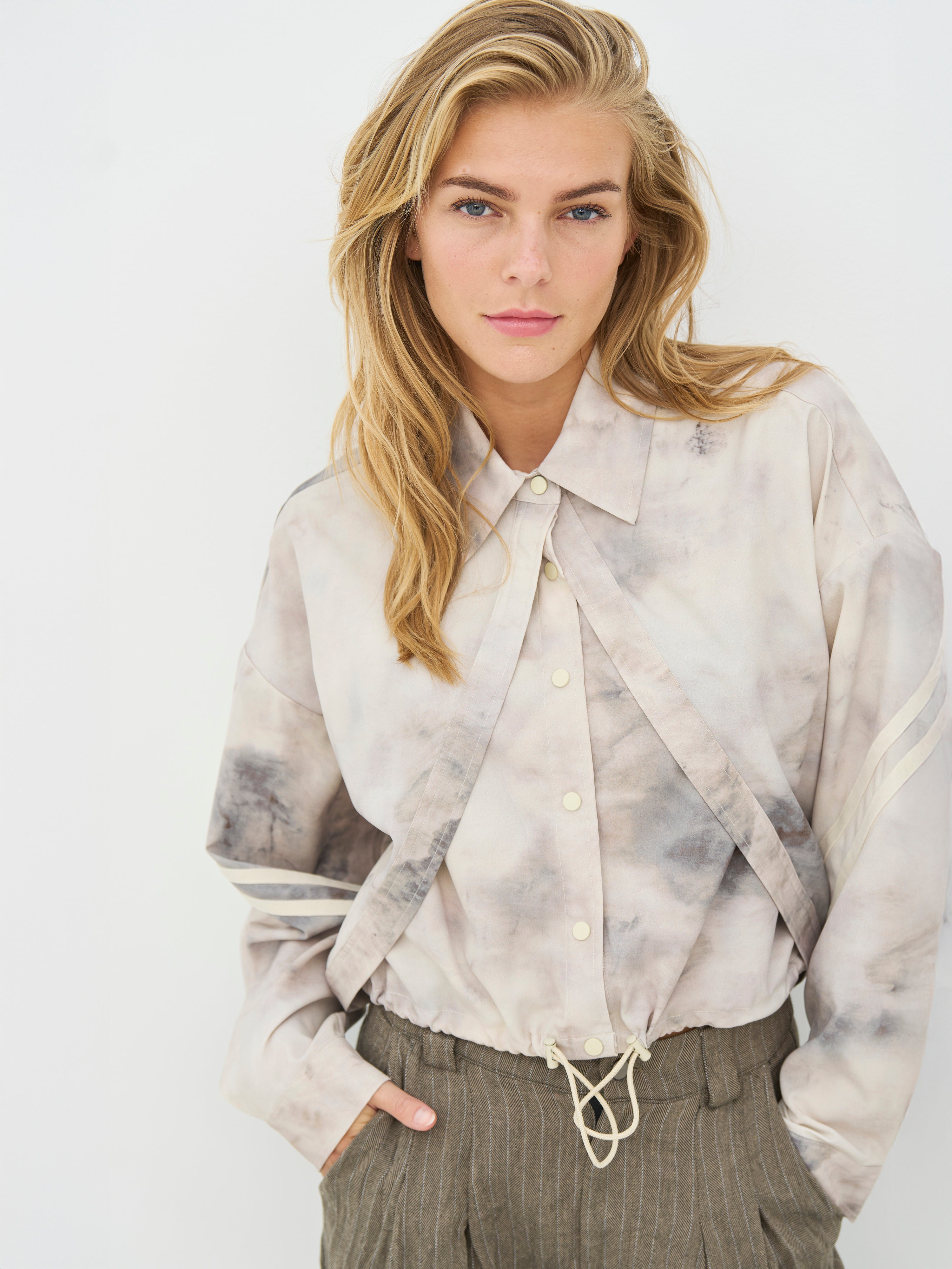 Jacke CLAIRE aus der Kleidungs-Kollektion von NÜ DENMARK. Beschreibung. Bombermodell-Jacke mit diagonalen Steppungen und einem Kordelzug im Saum.