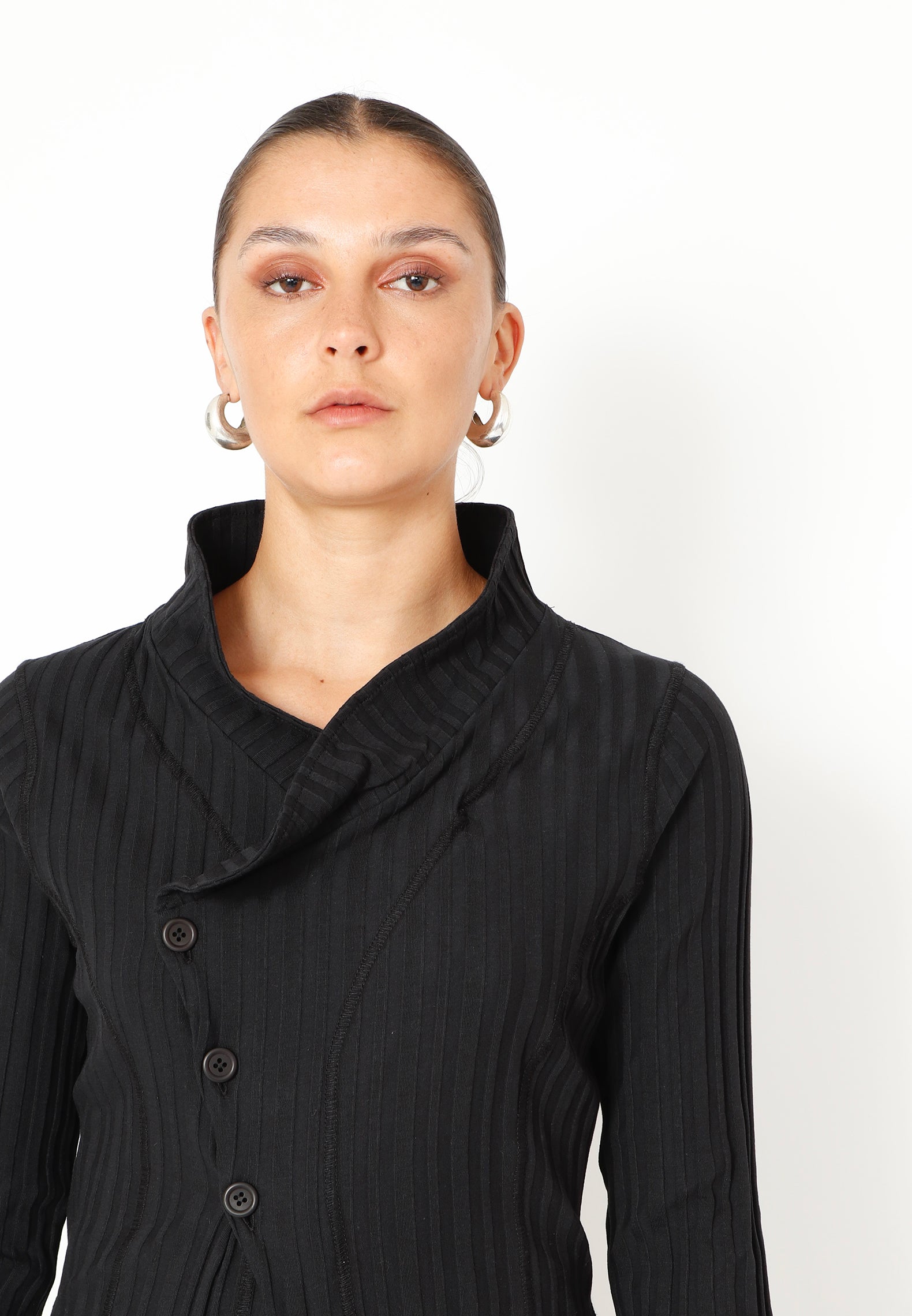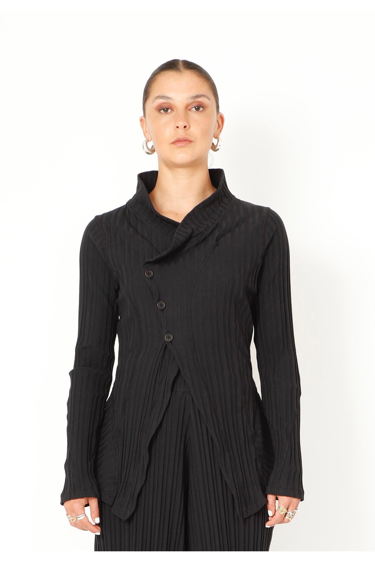 Jacke BALSAM aus der Bekleidungskollektion von Sort AARHUS. Taillierte Jacke mit asymmetrischem Knopfverschluss.