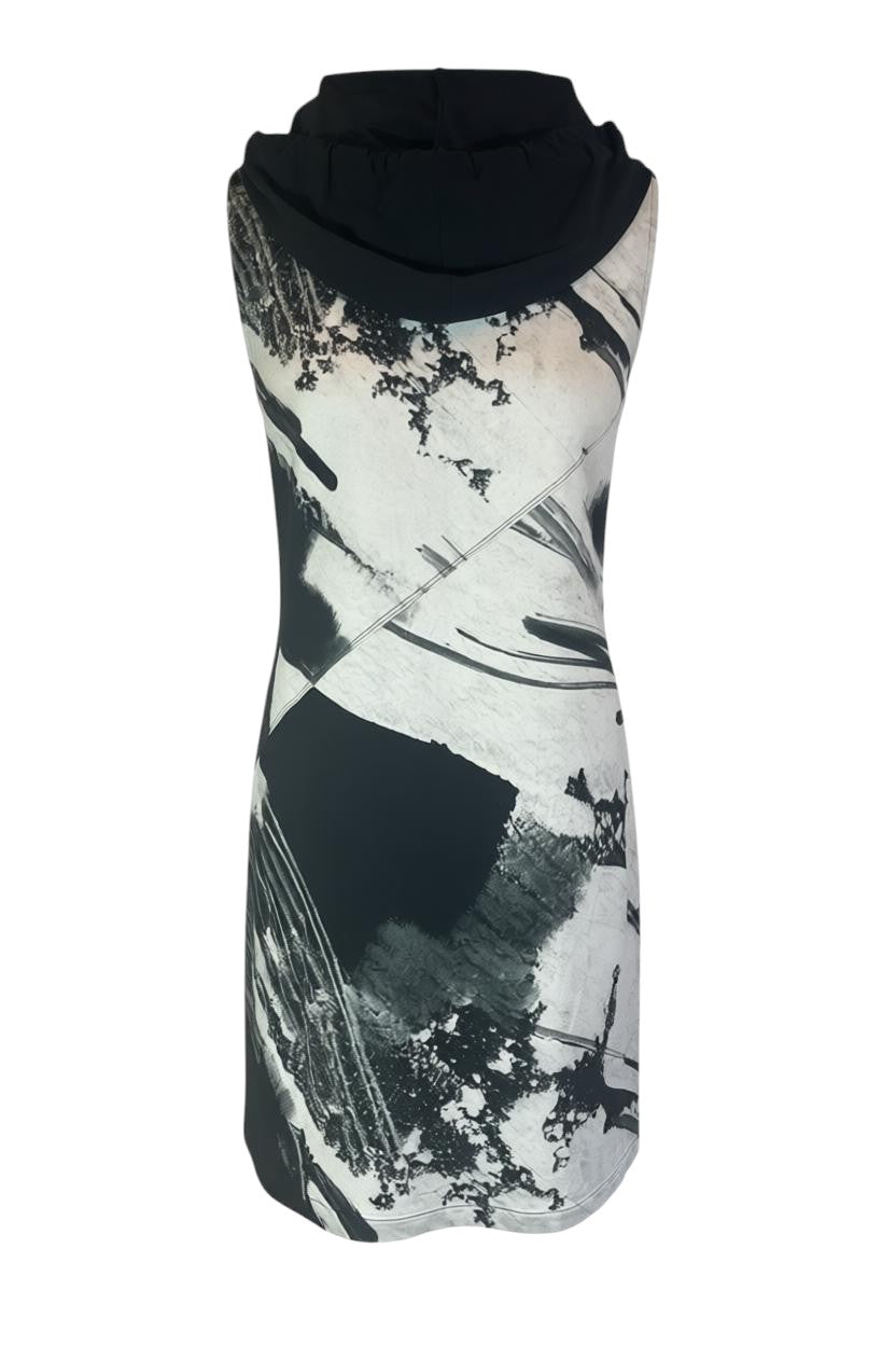 Tunika CORA aus der Bekleidungskollektion von AMBER & MOON. Gerade, ärmellose Tunika mit kontrastierender Kapuze