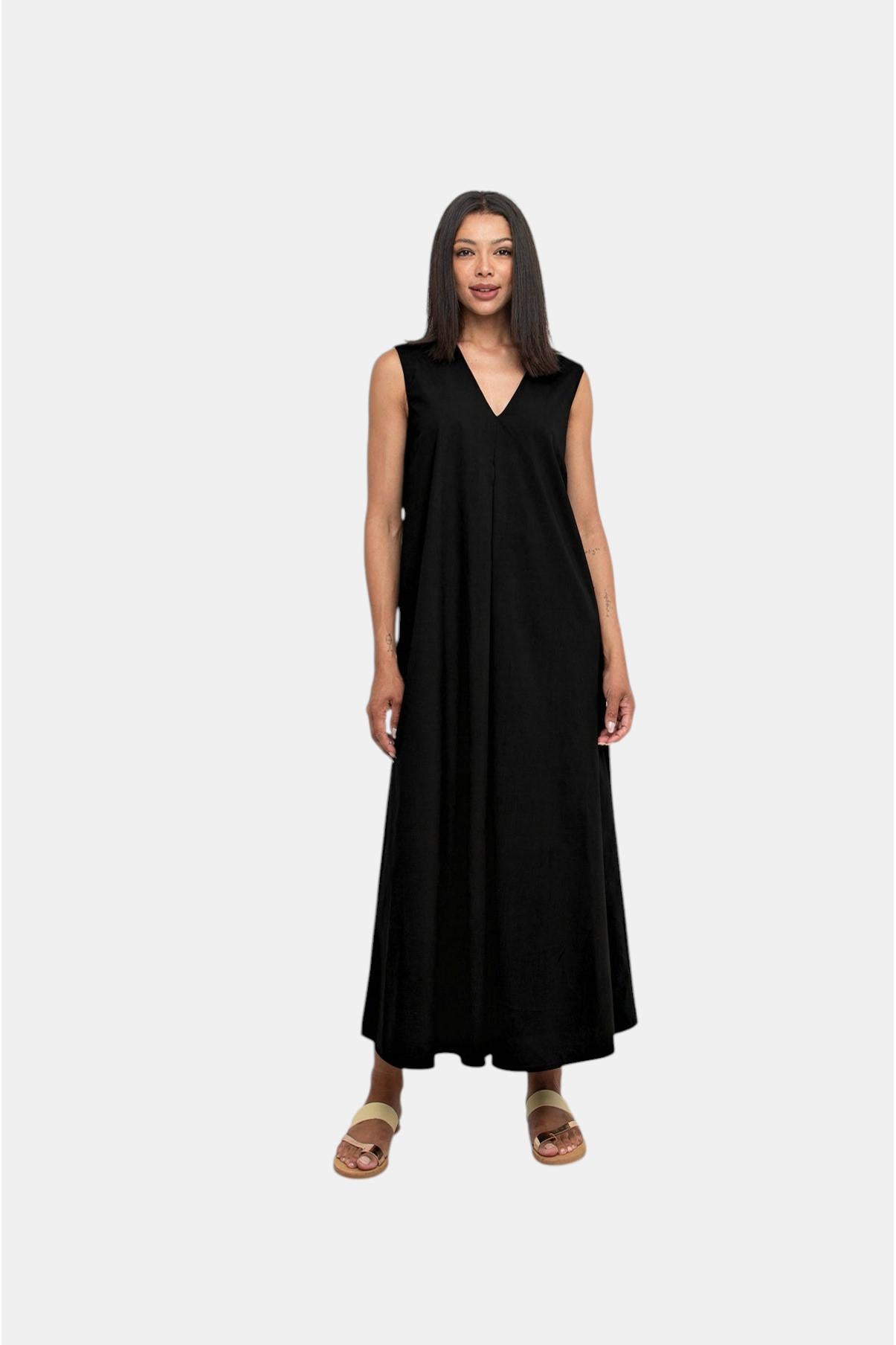 Kleid FLORENCE aus der Bekleidungskollektion von OZAI N KÜ. Ärmelloses A-Linien-Kleid mit V-Ausschnitt.