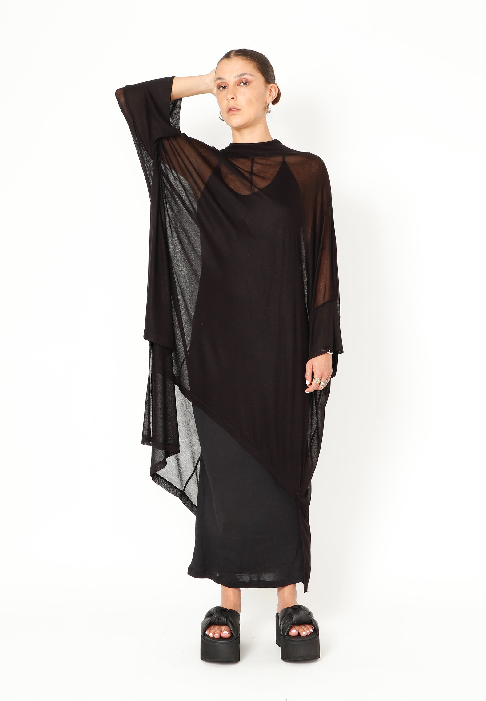 Tunika BOUVIA aus der Bekleidungskollektion von SORT AARHUS. Lange transparente Tunika/Kleid.