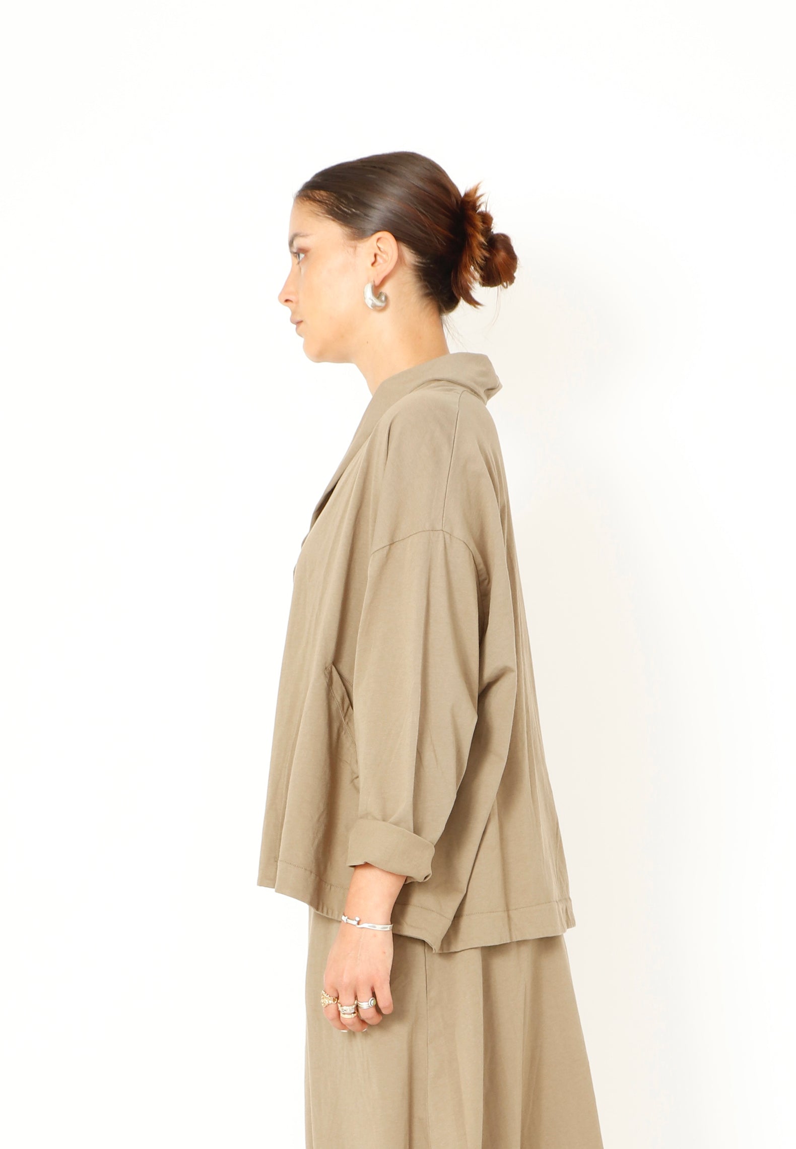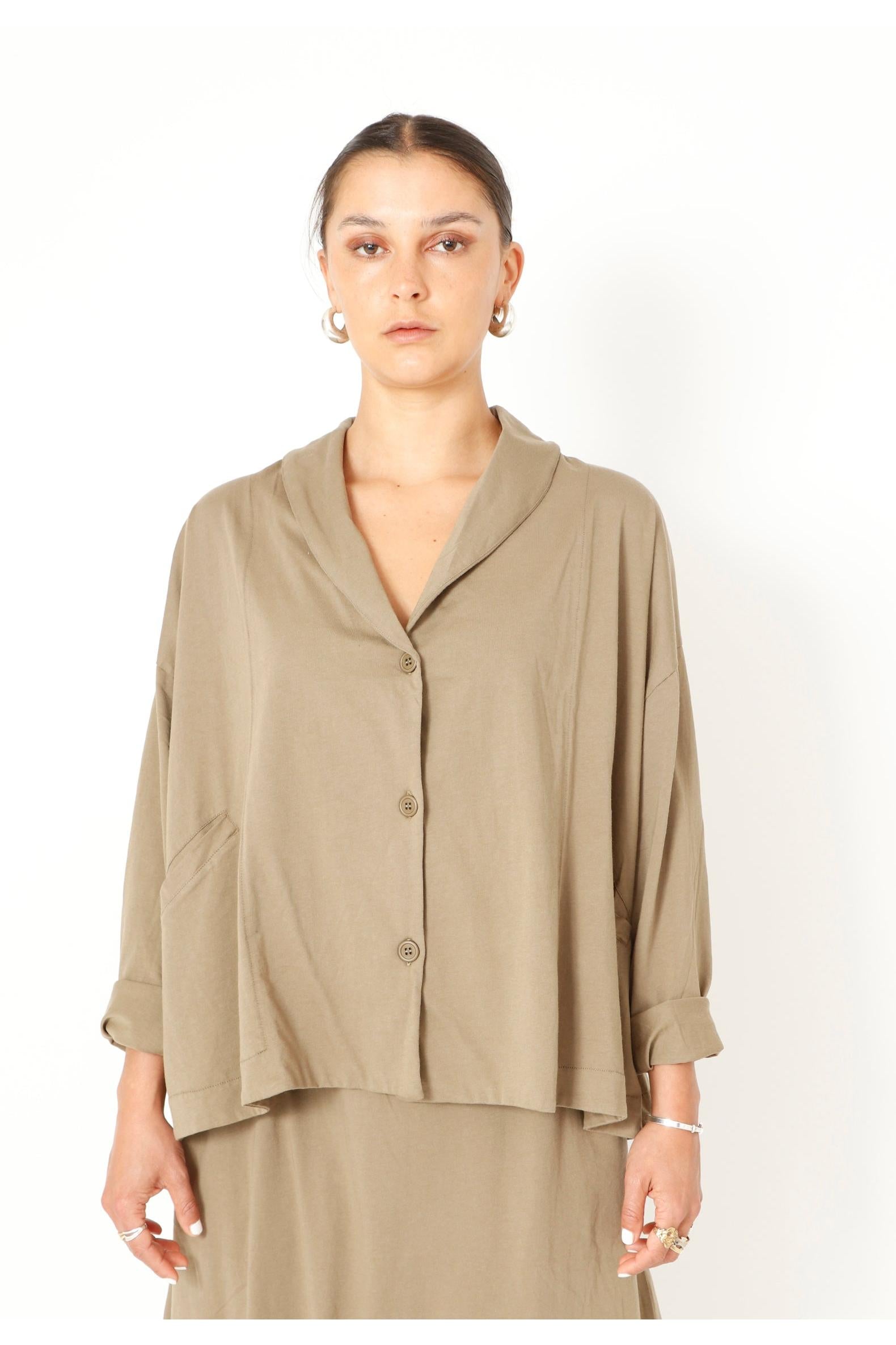 Vest BORAGO uit de kleding collectie van Sort AARHUS. Oversized model vest met knoopsluiting en een smalle reverskraag.