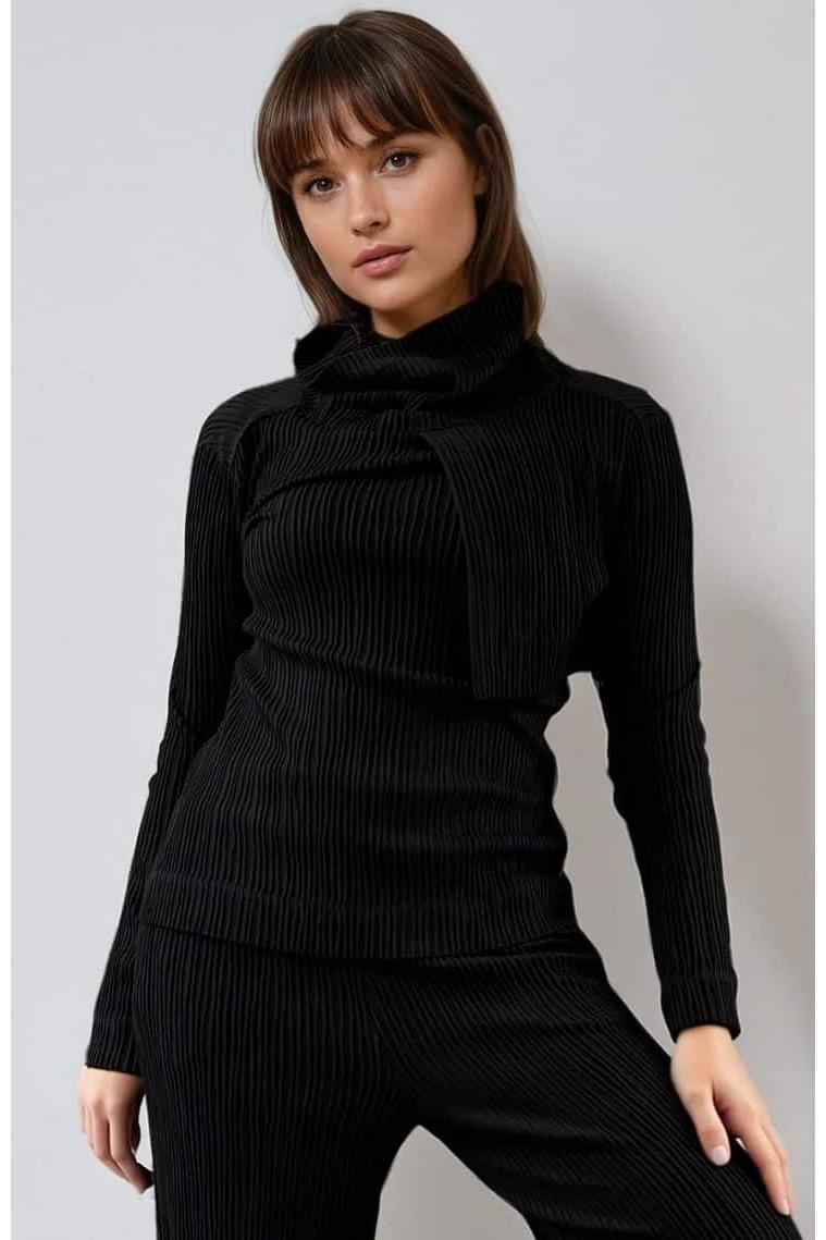 Top SAMA aus der Kleidungskollektion von ELSEWHERE Fashion. Schlankes Modell Top mit großem Kragen und einem Überschlag an der linken Schulter.