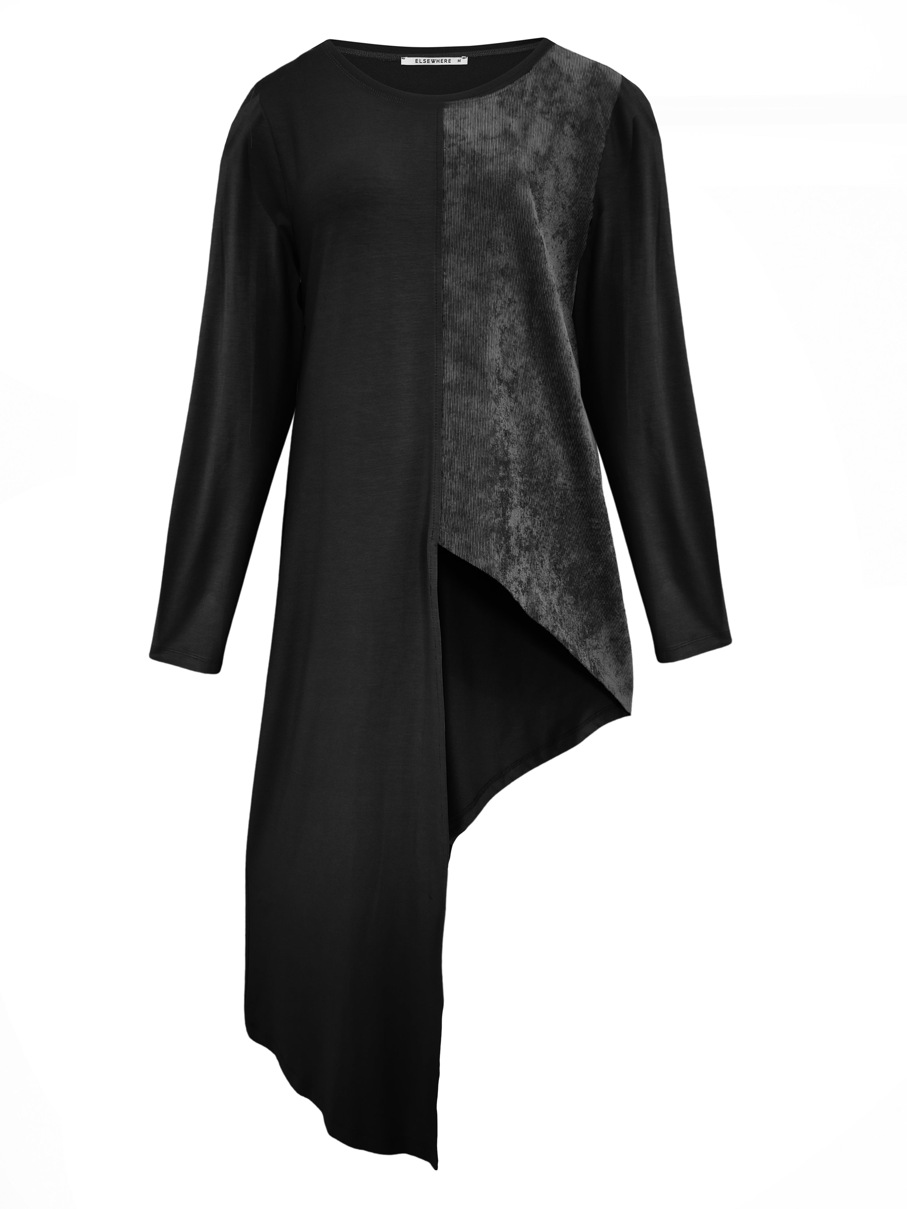 Tunika CORD aus der Kleidungskollektion von ELSEWHERE Fashion. Gerade geschnittene Tunika mit asymmetrischer Linienführung. Die Tunika hat einen Rundhalsausschnitt und lange Ärmel.