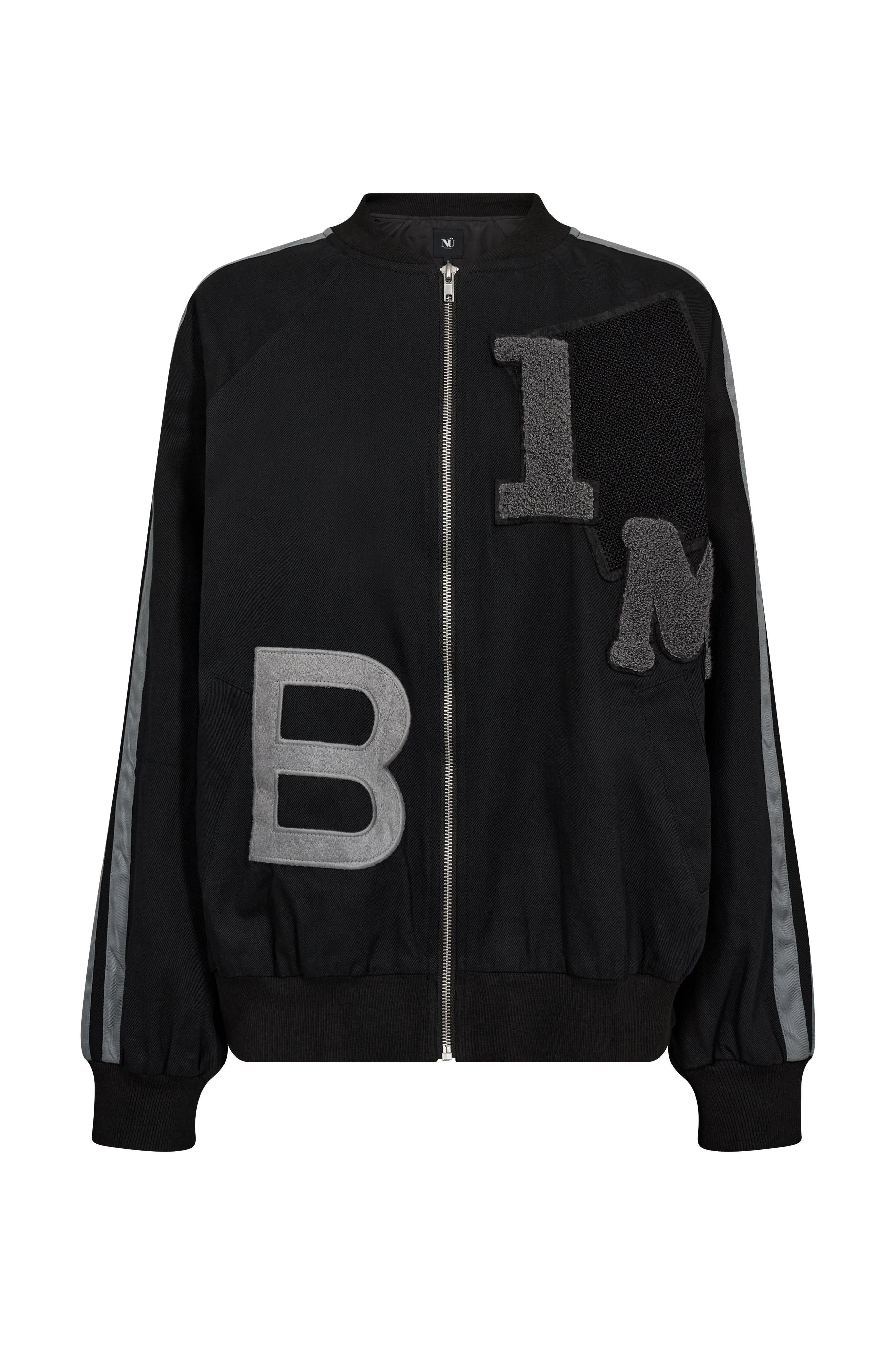 Jacke ASTON aus der Bekleidungskollektion von NÜ DENMARK. Bomberjacke mit breiten Rippbündchen an den Ärmeln und am Saum. Verschiedene Applikationen verleihen der Jacke einen coolen Look.