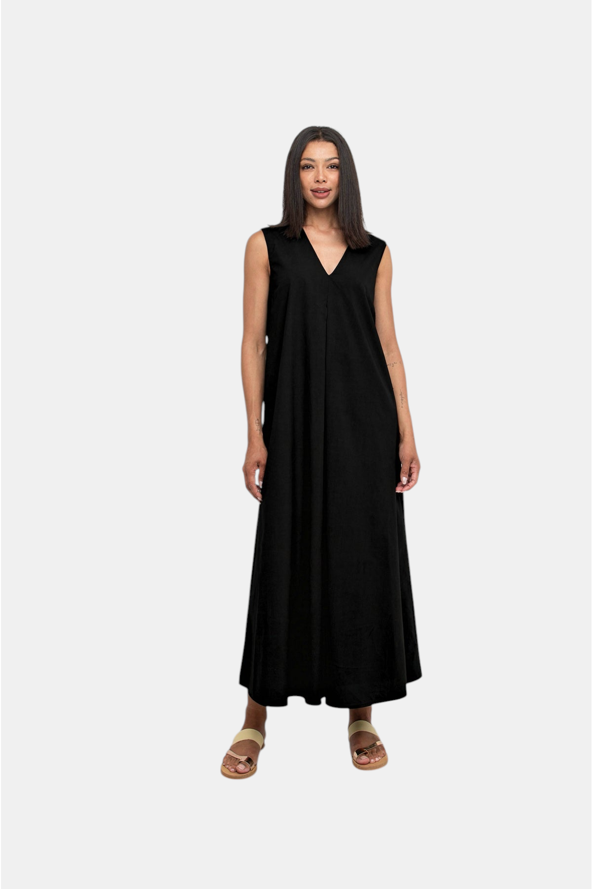 Jurk FLORENCE uit de kleding collectie van OZAI N KÜ. Mouwloos A-lijn model jurk met V-hals.
