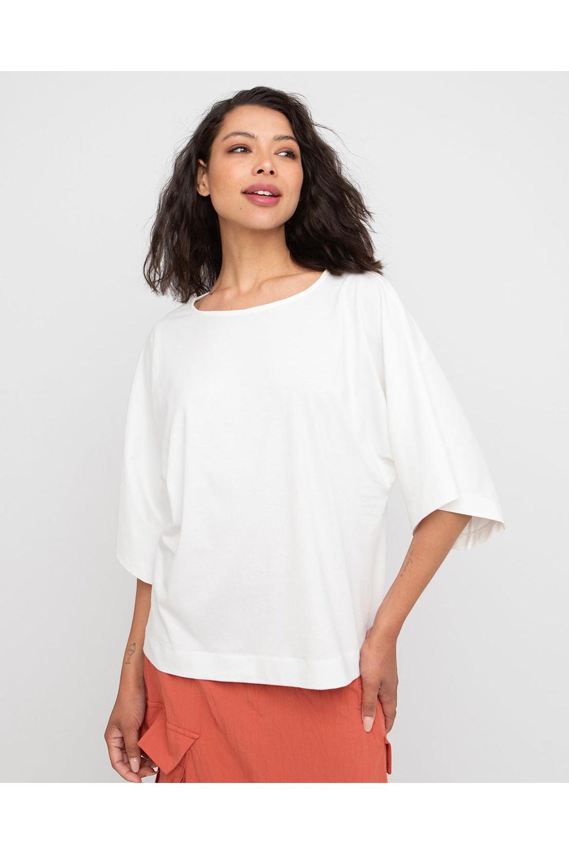 Top FRESCO uit de kleding collectie van OZAI N KÜ. Oversized model top met ronde hals en wijde aangeknipte mouwen tot op de elleboog