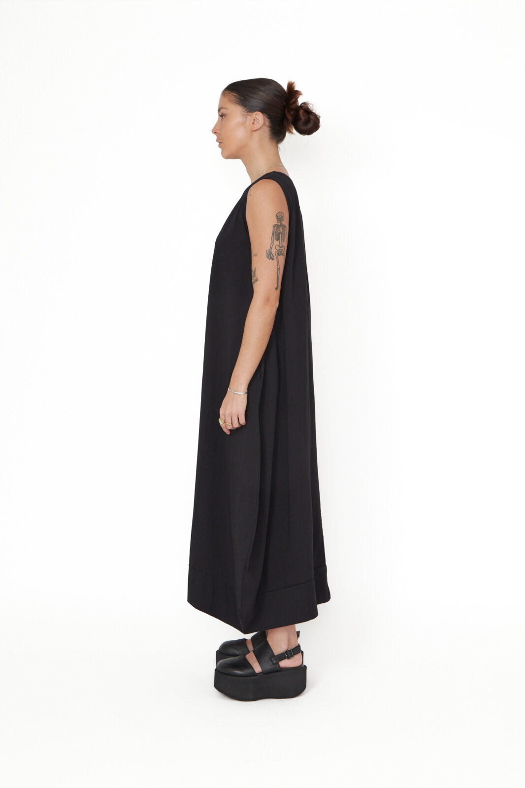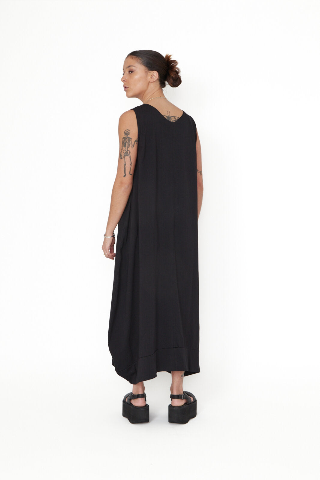 Jurk BRENT uit de kleding collectie van SORT AARHUS. Tulp model jurk met ronde hals. Mouwloos.